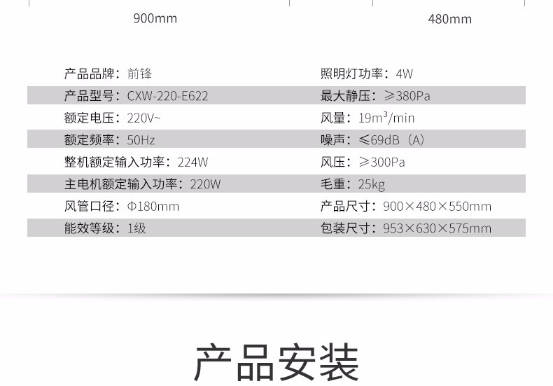 前鋒歐式吸油煙機E622