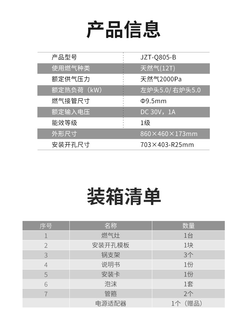 前鋒嵌入式燃氣灶Q805-B