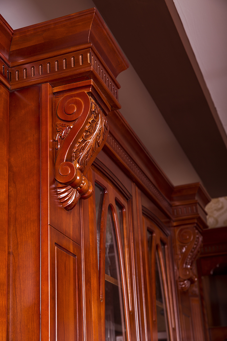 精湛的雕花,在紅潤(rùn)的漆面下閃爍著新古典注意的莊重典雅,恢宏的氣勢(shì)彰顯著