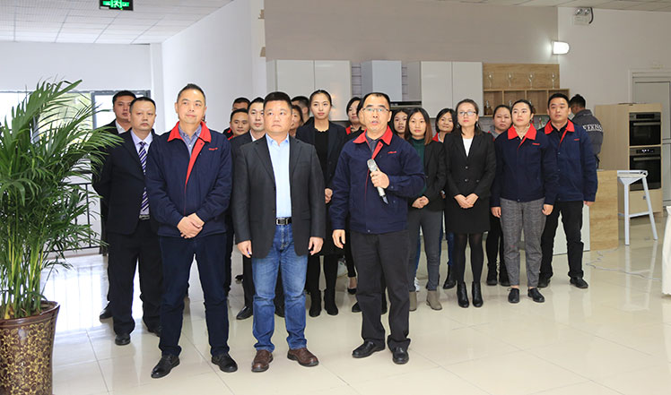 訂貨會上,前鋒櫥柜公司總經(jīng)理鄂鋼帶領(lǐng)新的櫥柜管理團隊在現(xiàn)場共同向大家許下鄭重承諾: